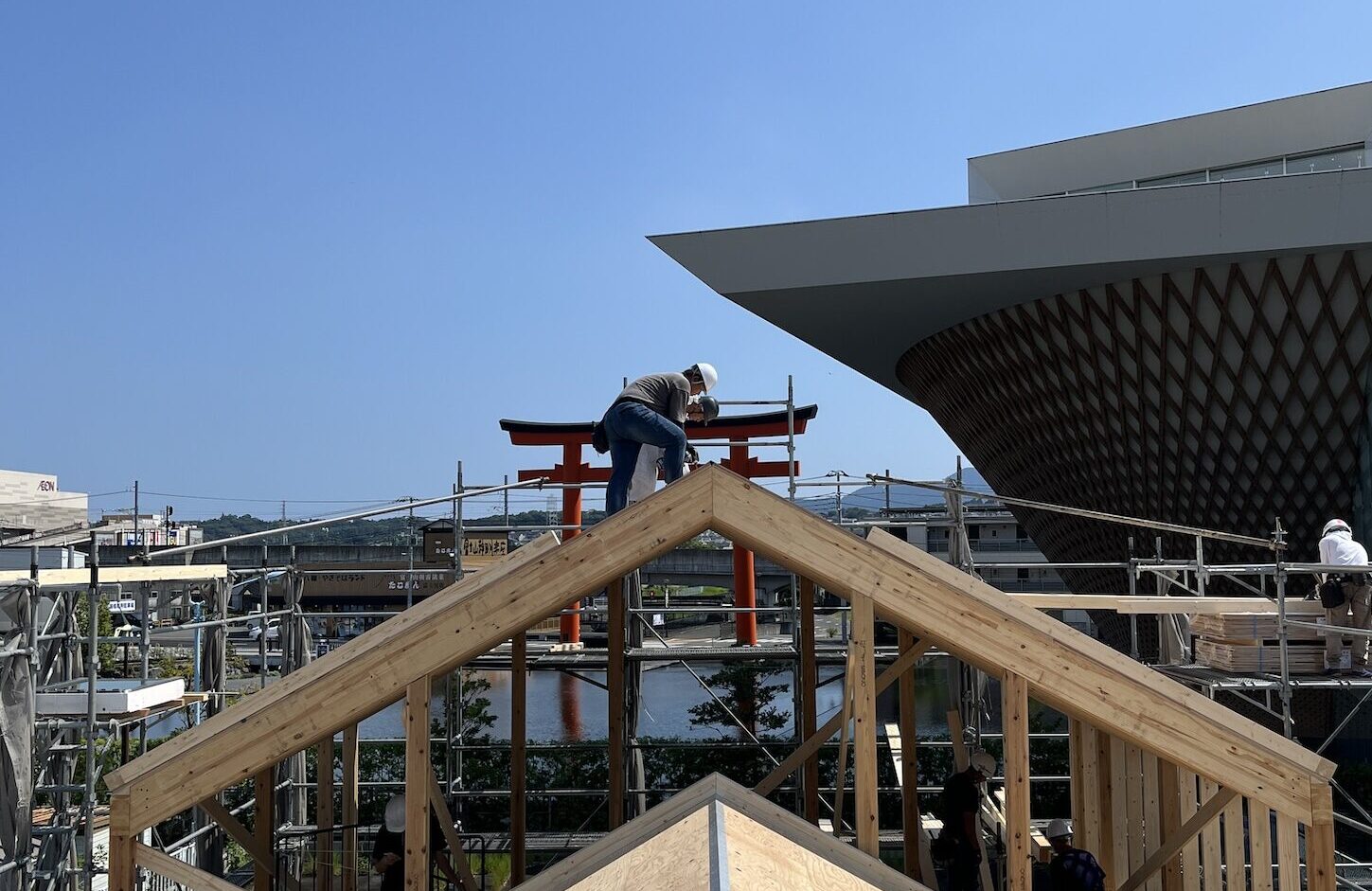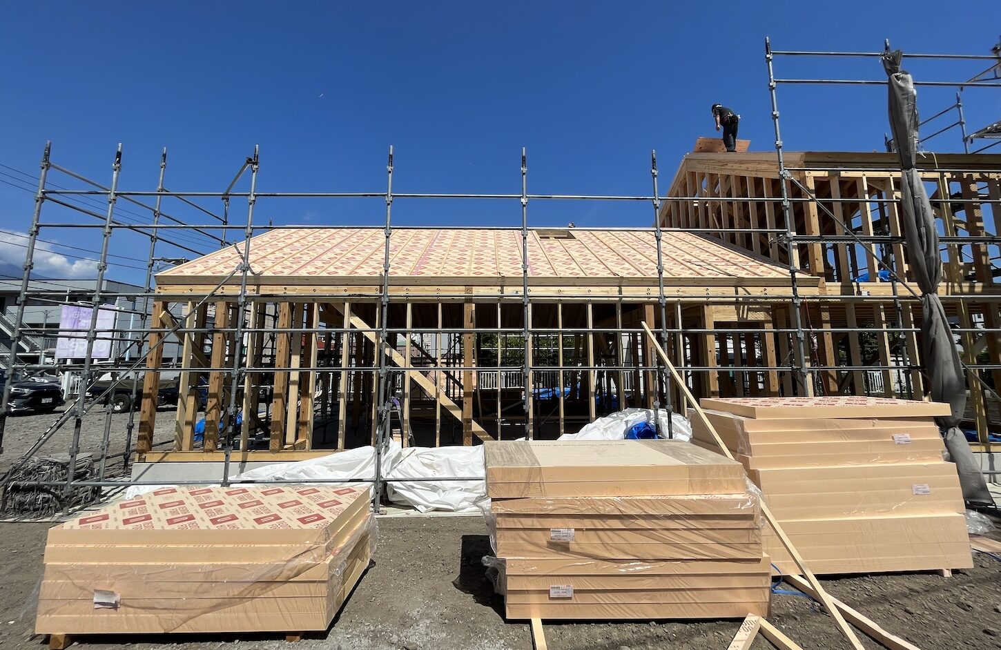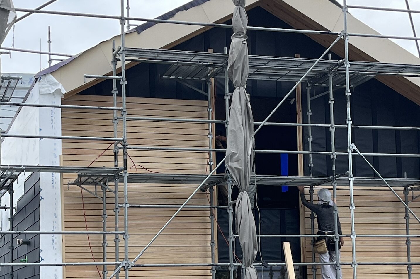国産材木造合掌組みの大空間 高性能外断熱工法